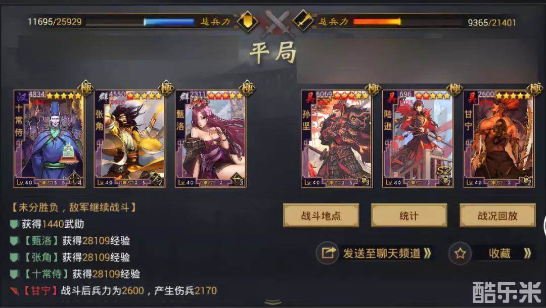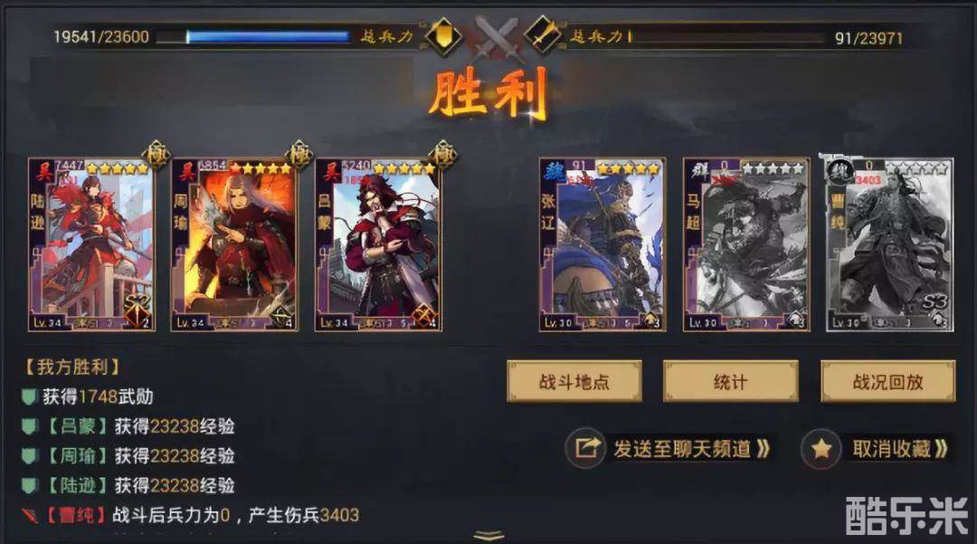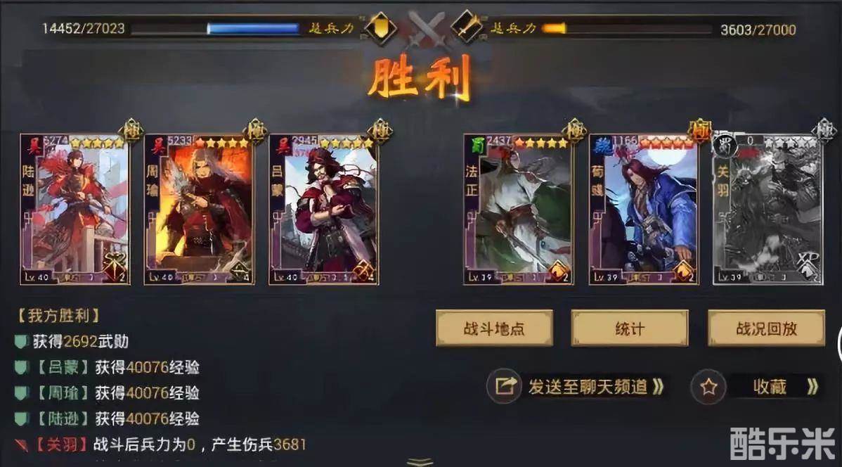 从战报可以看出,【惊雷破阵】虽好,但并不很适合都督。都督走的是指挥控爆发流,控住对方之后要接上高输出来扩大战果。而【落雷】、【迷阵】的输出不够,减少了都督的输出上限,性价比较低。