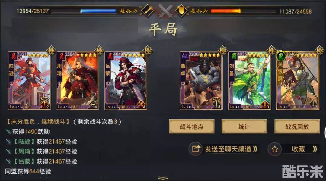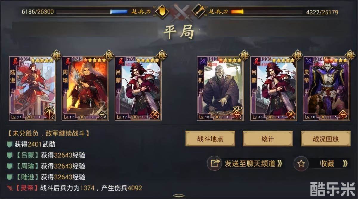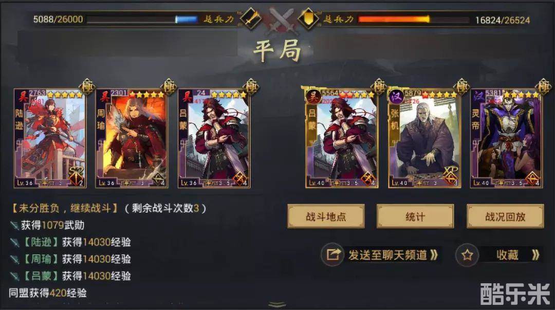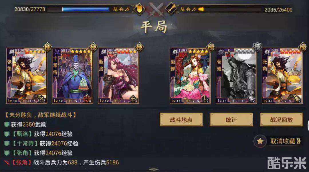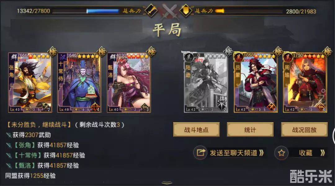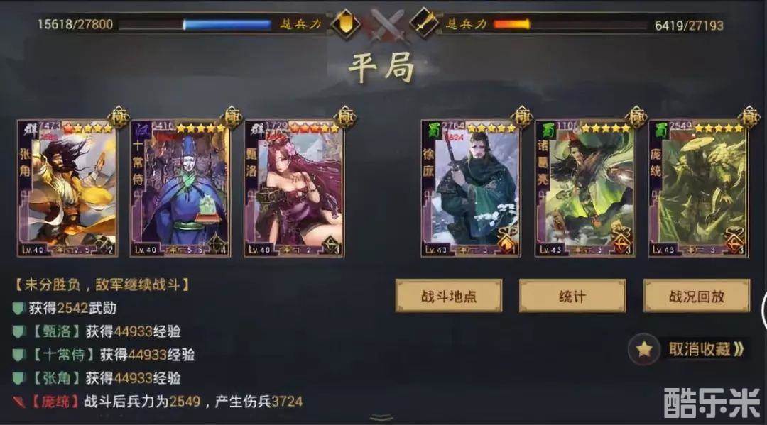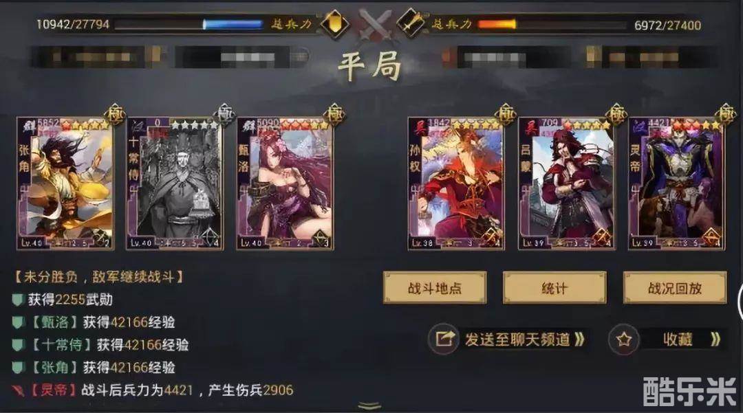 本次参战共计50多场,战败2场,战胜1场,其余平局(兵力差5000以内)。败率约在4%,胜率在2%.