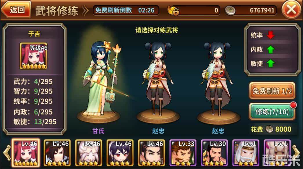 随着官职的不断晋升,各位遇到的敌人也会愈加的强大,这时候不妨放慢晋升的脚步,好好的修练一番。此修练不是平常的“打怪升级做装备”,是真正的找到其他武将,通过切磋技艺好好的修练一番。通过武将修练,武将的各项属性都会上升,例如和诸葛孔明切磋兵法来提高智力与统率,和关羽切磋刀法来提高武力和敏捷。当然了,武将也非全能之才,修练过程是一个有得有失的过程。有些属性可能会在修练的过程中下降,如果修炼出无双武将,就看各位穿越者的聪明才智啦!