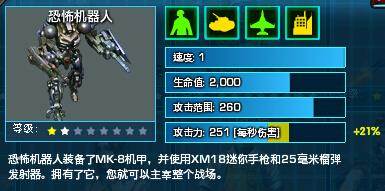 红警大战恐怖机器人唯一作用就是防空,但后期打黑鹰这些移动快的,又显得无力。