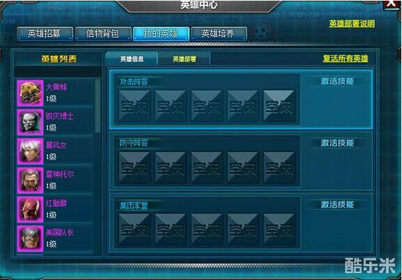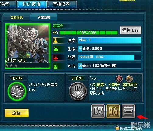 或者通过我的英雄—英雄信息界面中右下角的三个按钮可以快速完成部署。