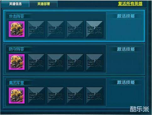 打开英雄界面--我的英雄—英雄部署,可以看到有3个阵容槽位