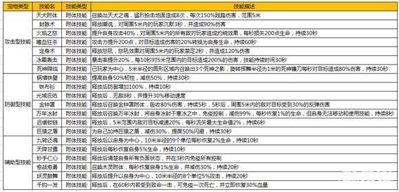 天子手游宠物技能与战斗功能介绍,技能主要分为三大类,其中一个是攻击型的,一个是防御型的,还有一种是辅助型的技能,不同类型的技能发挥的作用不同,谨慎选择吧。