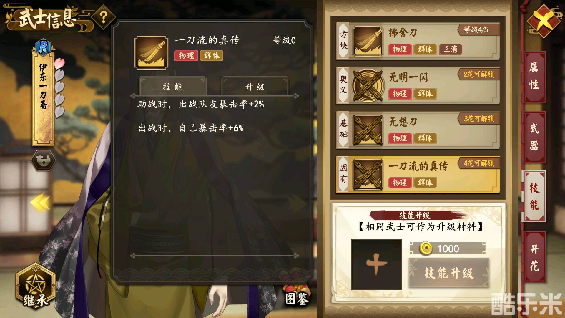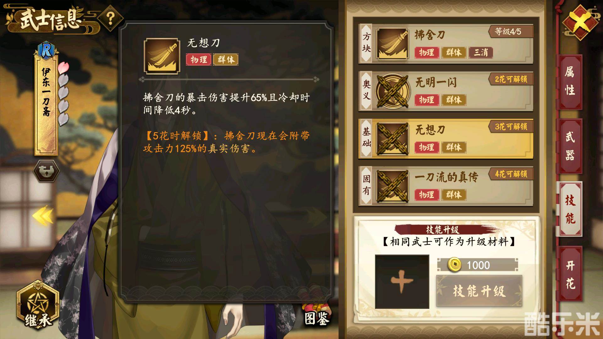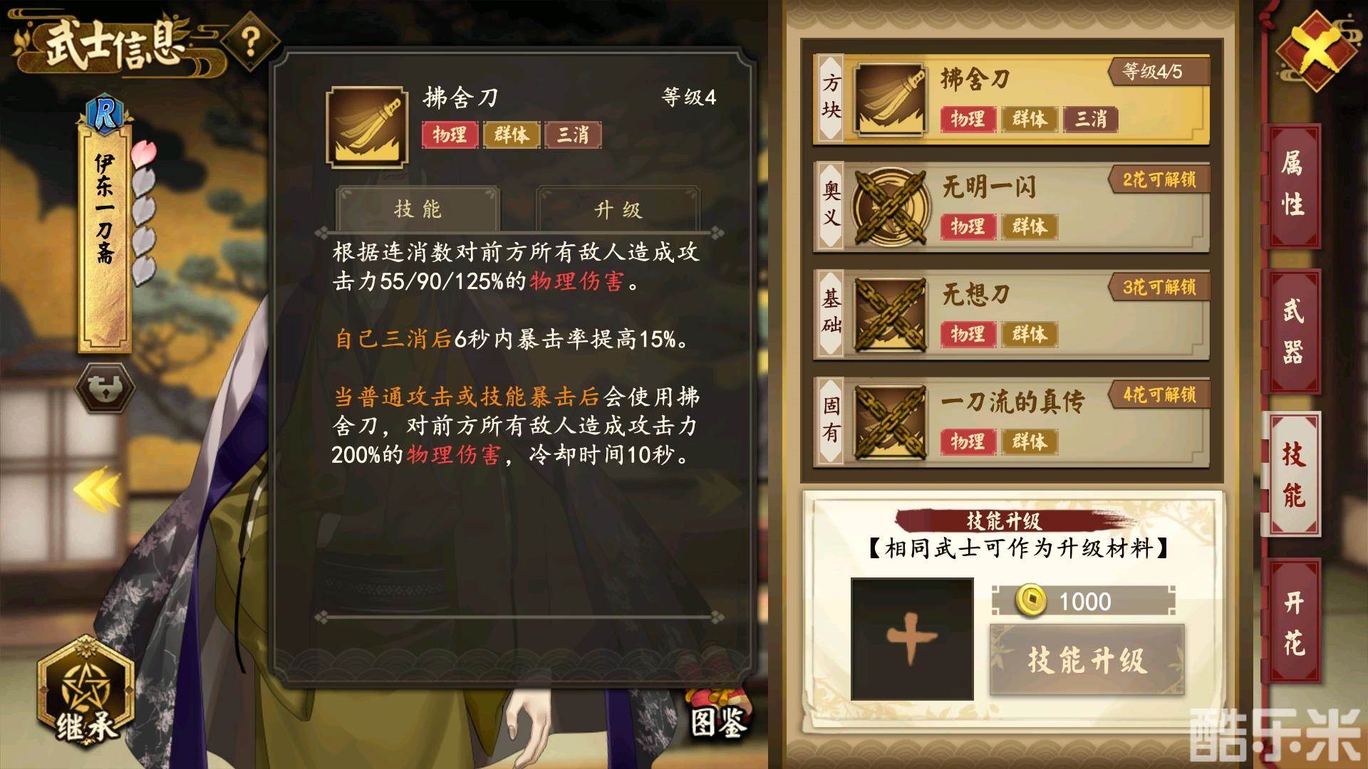4技能,跟自己想搭配的暴击几率提升,刀郎是一个真正的一刀流武士,有时候脆皮被直接暴死也不是不可能,但是有个不知道事缺点还是bug的是,当他在暴击触发1技能后当下的动作会被打断。