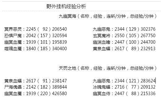 以上数据是我吃了一个1.5倍和两倍经验丹以后的数值,不过无所谓,这个数据图不是告诉大家一分钟我可以挂多少经验,而是哪些怪一分钟以内得到的经验多,仅供参考。