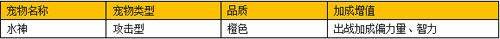 当玩家在天子手游中在开服后的第八天21:00整,战斗力达到对应名次,玩家即可获得对应的奖励。其中就包括水神的相关碎片,那么作为前五名高战力玩家的珍稀灵宠,到底水神有何实际的属性和技能呢?