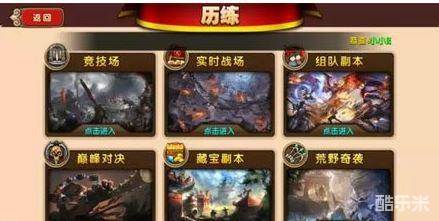 实时战场需要真人操控,目前只有3v3,参加时间为12点到13点30 分,晚上参与时间为21点到22点30,消耗5格历练值,可以获取荣誉值。组队副本很简单匹配到等级高的托管就行,匹配到等级低的那就手动吧骚年,别拖后腿,消耗五个历练值。目前只开放8个组队副本,获取勇者之证。巅峰对决是真人对真人,需要好的操控。藏宝副本获取金币,装备,和经验药水。荒野奇袭都是在野外战场哦。野外地图稍大等级越高可以进入的地图越多。