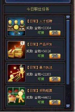 日常任务和职位任务绝对是每日必须完成的,能获取大量的金钱、阅历、声望等,是强化自身各类资源的绝佳获取途径。
