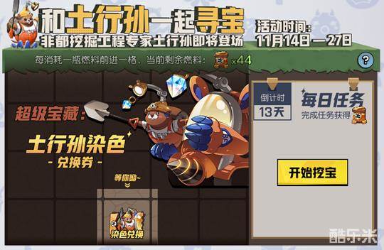 随着非都挖掘工程专家土行孙破土登场,学园也将开启惊喜十足的挖宝活动!11月14日至28日,每日完成任务即可获得燃料,每消耗1瓶燃料,可以在地下往相邻方向前进一格,挖掘并获得地下的奖励。非都地下最深处埋藏着土行孙的专属染色,等待你的发现喔!
