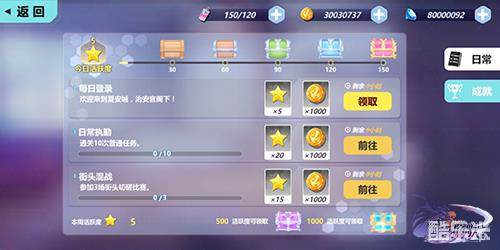 日常任务是游戏初期获得资源的一个重要途径,完成每日的所有日常任务基本可以保证玩家在角色培养上的更高一层的需求,比如完成任务获得的金币进行技能培养、道具购买,或活跃度积累所开启的宝箱,里边有着武器进阶必不可少的碎片。