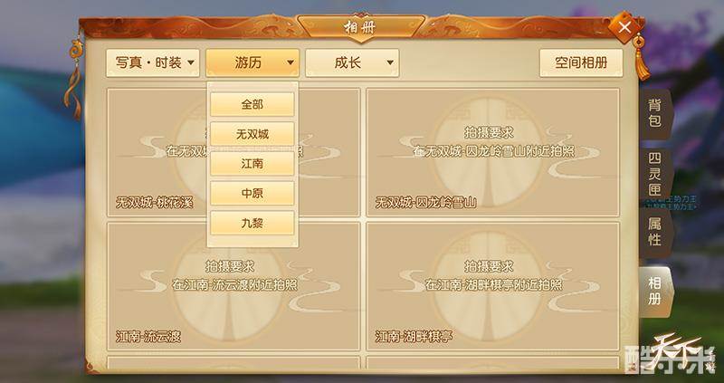 在《天下》手游已经过去的时光中,总有一些美好瞬间是值得怀念的。不如一起坐上时光机器“大荒相册”,重温那个心动的瞬间!全新相册玩法上线了贴心的照片分类功能,方便各位少侠准确定位,再次体验那种美妙的感觉。一处美丽的风景,一件光彩夺目的时装,一个萌萌哒坐骑,在“大荒相册”里你都能找到他们存在的痕迹。还有各种各样的滤镜和贴纸可以使用,给唯美的照片增添了几分欢乐的感觉。除此之外,收集到对应的照片少侠还可获得丰厚的奖励,不仅有海量经验,更有专属相册称谓。还等什么,一起去拍照啦!