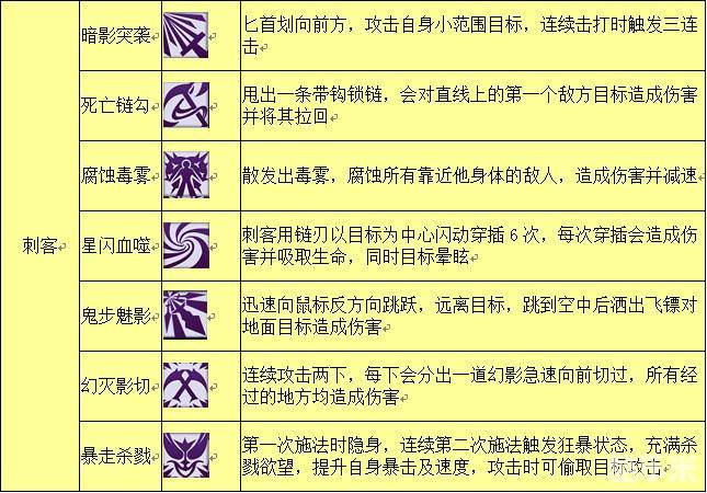 不败传说刺客职业简介及技能效果介绍