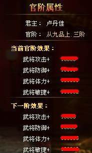 6.官阶属性为参与武将战的武将攻击、防御、敏捷、体质四项属性。玩家获得的属性加成为当前官阶加成;