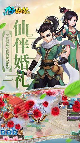 玩家间亲密度达到1000即可结婚,结婚可进入婚姻殿堂举办婚礼。新人可发红包的喜糖给宾客们拾取,拾取喜糖有机会获得经验、藏宝图、修炼丹等惊喜奖励,而宾客们也可给新人献花、敬酒、点烟花。结婚后,新人可领取独创的夫妻任务,完成任务可以获得惊喜奖励!来一场浪漫的婚礼,游戏交友两不误哦!