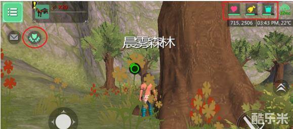右上角的黄色图标:这个是你的口渴度,当他的长度越来越短时,代表你亟需喝水,不然就会因为太口渴而使生命值降低