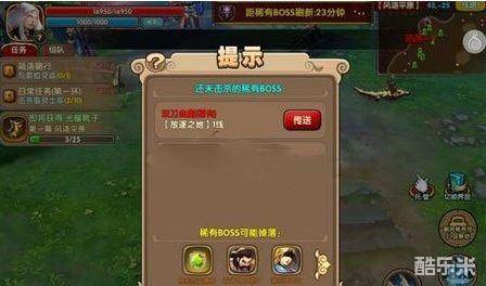 游戏中稀有BOSS可以直接在游戏主界面的地图旁边看到提示,点击这个提示就会有未击杀的BOSS列表,稀有BOSS会掉落英雄碎片和核心符文原石;