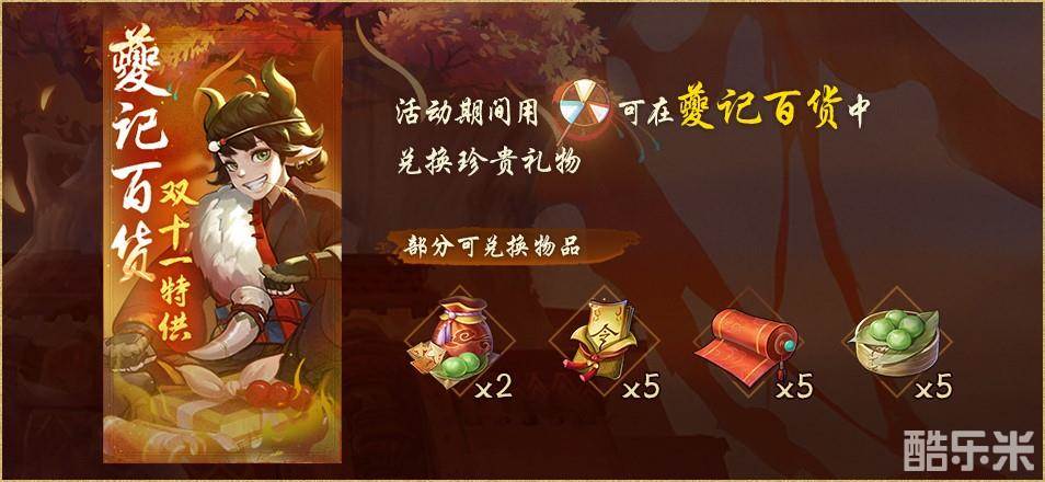 在11月15日,阿织和涂山夜限时卡池即将开启,两位强大妖灵被召唤的概率大大提升。并且在11月11日,双十一特别活动“夔记百货,开张大吉”已经正式开张!截至11月18日期间,降妖师们通过每日签到,只要完成5次,就可以领取所有的奖励道具。另外,在全新的限时商店“夔记百货”,降妖师们还可以消耗风车兑换各种珍稀道具。同时,利用免费获得的满减卷,可以以最低数量风车领取奖励。