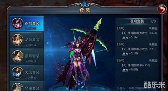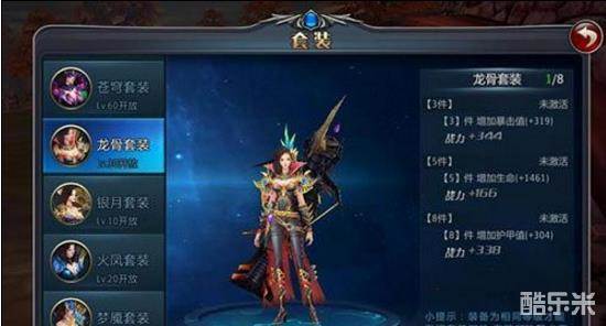 人靠衣装马靠鞍,《黑暗光年2》首轮推出的版本中,一共为弓手设计了六套精美的套装。一个套装包含8件装备,包括武器,头盔,铠甲,护手,鞋子,项链,耳环,戒指。装备需要不断进行聚魂突破,拥有3件相同套装内的装备,就可以激活该套装属性。拥有5件,8件可以激活更多套装属性。