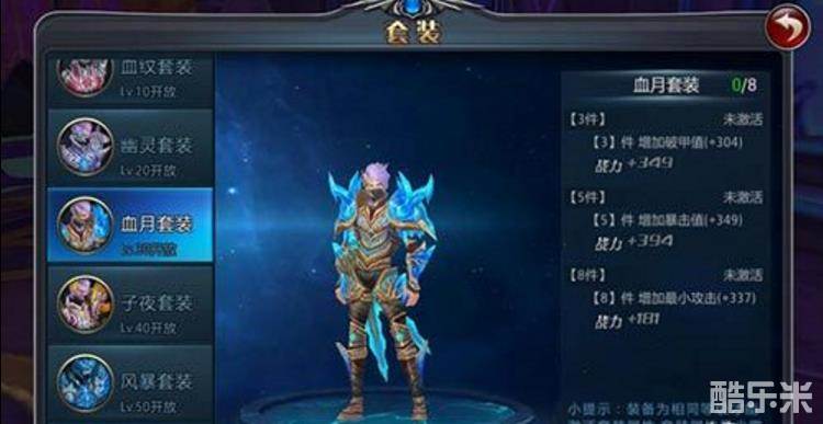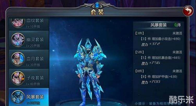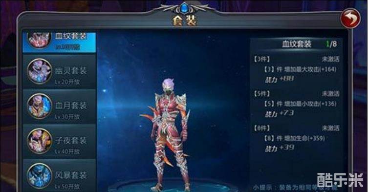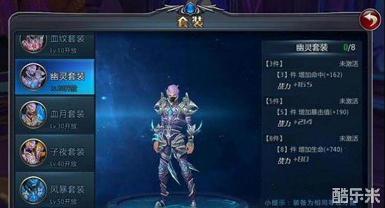 人靠衣装马靠鞍,《黑暗光年2》首轮推出的版本中,一共为刺客设计了五套精美的套装。一个套装包含8件装备,包括武器,头盔,铠甲,护手,鞋子,项链,耳环,戒指。装备需要不断进行聚魂突破,拥有3件相同套装内的装备,就可以激活该套装属性。拥有5件,8件可以激活更多套装属性。