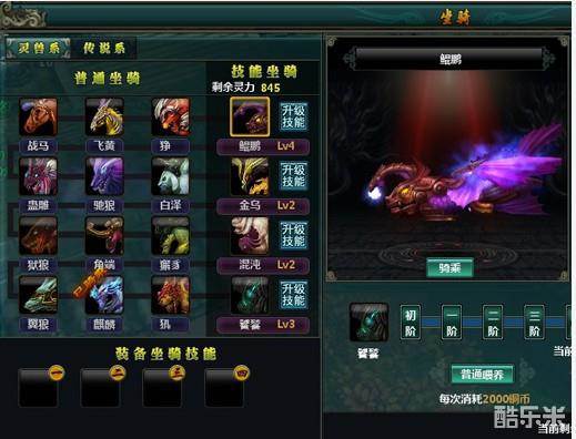 当然要获得坐骑技能也并非那么容易,如同主角获得新绝技技能拿那般,要经过悉心培养。首先需获得技能坐骑的骑乘资格。坐骑系统最初始时只开启最初级的战马骑乘资格,其他坐骑只能通过逐步喂养来得到,坐骑喂养相较之前也更为容易!