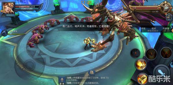 当BOSS血量>60%时,BOSS会在地下随机位置召唤持续释放的紫色光柱并对敌人造成伤害;并且每隔一段时间为自身一定范围内的友方恢复大量血量。各位勇士在击杀BOSS的时候一定要注意脚下随时出现的红框,一旦发现红框过于密集,应立即使用位移技能躲避。