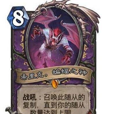 我自己觉得吧,表面上看术士的动物之灵可以说是为【蝙蝠之神】这张卡独家定制,但有2个问题:第一,一回合能有多少友方随从死亡?第二,如何让buff精准定位在【蝙蝠之神】身上?考虑到橙卡的效果,当然是攻击力与血量越高越好,否则就是某条龙的效果。如果手牌上只有这一张橙卡,而且还要拖到8费回合,基本上意味着术士的随从牌不多,可能亏了不少节奏。何况【蝙蝠之神】不带嘲讽,这样就显得强度有点低。