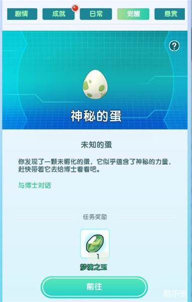 觉醒任务,主要是针对神秘的蛋进行养成,完成一博士派遣给你的一系列的任务比如捕捉特定的精灵,击退强敌等,然后获得蛋孵化和进化的材料梦境之玉,最终孵化出来的精灵能成长到神马地步这就完全靠你们的努力了!