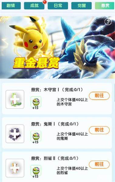 悬赏任务,悬赏任务主要是博士发布测捕捉个体值满足一定数值以上的任务,可以获得提高亲密度的材料波芙蕾,这样的话就不用等每天的免费抚摸次数了。