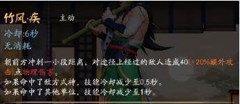 4、主动“竹风·疾”:拥有优秀突进效果,若命中敌方式神或其他单位,能减少该技能的冷却时间(位移技能,距离和瞬步一样)