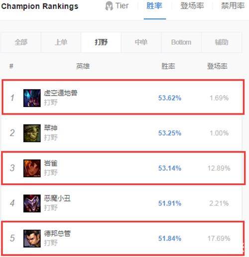(韩服打野胜率排名)