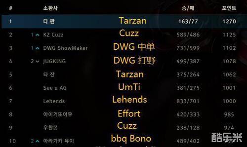 从上图中可以看出韩服前十的玩家中有七位打野位,极大的肯定了打野在上分中的很好效果与作用,给大家推荐这三位英雄的原因分别是:雷克塞作为胜率第一的英雄拥有很高的胜率保障,岩雀是版本连续几个版本的OP英雄胜率登场率很高,赵信简单易用很适合大众玩家的上分选择。