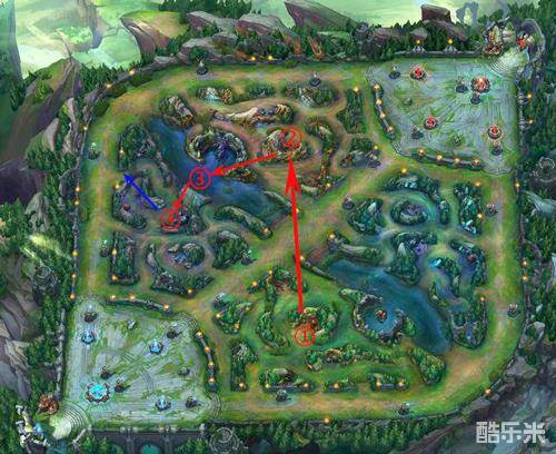 由于3级前的岩雀相对对抗性不强,面对赵信奥拉夫等突进英雄比较乏力,所以推荐红开后刷上路河道蟹的路线,极大保证自己在蓝区刷野的安全性,保证我方上单的安全,在刷完河蟹后可以直接选择抓一波或是回去刷蓝和魔爪蛙。