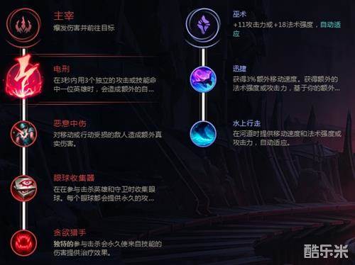 主系主宰带电刑、恶意中伤、眼球收集器、贪欲猎手,副系带迅捷和水上行走,这套符文极大提升岩雀在抓人和野区埋伏时的瞬间伤害,配合被动+符文的移速跑图能力很强。