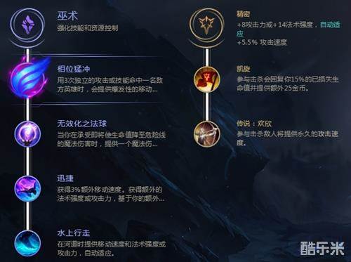主系巫术带相位猛冲、无效化之法球、迅捷、水上行走,副系精密带凯旋、欢欣,这套符文给予赵信高机动性和追击gank能力,主要近身对面赵信的野区制裁力会很大。
