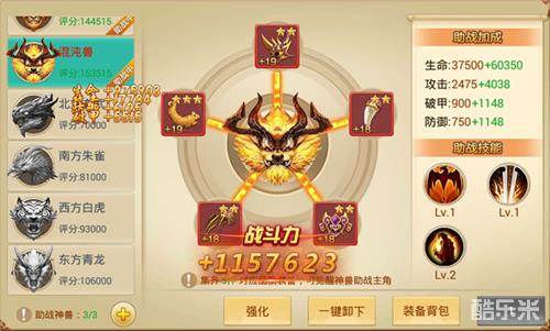 而至于资源丰富到什么程度?不得不提《剑逆八荒》随之推出的“神兽系统”。除了奎木、九尾、精卫、狻猊等初级神兽,更有终极神兽——北方玄武、南方朱雀、西方白虎、东方青龙四大“上古圣兽”静候多时。值得一提的是,所有的神兽都能免费激活,不花一分钱,我们只需要搜集对应的神兽装备即可。神兽一旦激活,能瞬间提升百万战力!