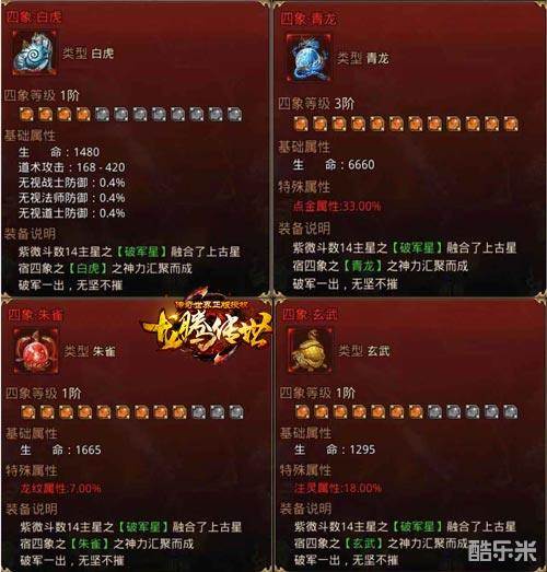 太极生两仪,两仪生四象。自“青龙”秘笈亮相以来,传奇勇士翘首以待,等待着其余三圣兽的面世。在这次更新中,其余三圣兽也终于降临啦!玩家可以在材料副本使者处通关“四象副本”,获取提升四象属性的材料,花费一定量的元宝还能获得多倍奖励!四象属性各有秋千,玄武对应龙纹,青龙对应点金,玄武对应注灵,白虎则附加“无视职业防御”的特殊属性。修练四象会给人物角色带来巨大的战力加成,玩家们可不要错过了!
