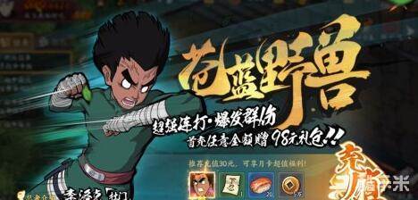 首冲赠送的奖励是苍蓝野兽,A级忍者李,小编在这里强烈推荐玩家入手,毕竟这是一个A级2星角色,我们的主角鸣人刚开始也就才是B级忍者,就可以完成刷图任务,所以A急忍者在前期的强力是显而易见的。