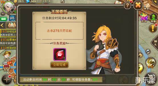 完成任务后,系统会自动打开王国委托面板,点击提交按钮即可完成任务领取奖励。30分钟活动期间玩家只能接取并完成一次任务,并且活动时间结束后任务会作废,无法获得任何奖励。