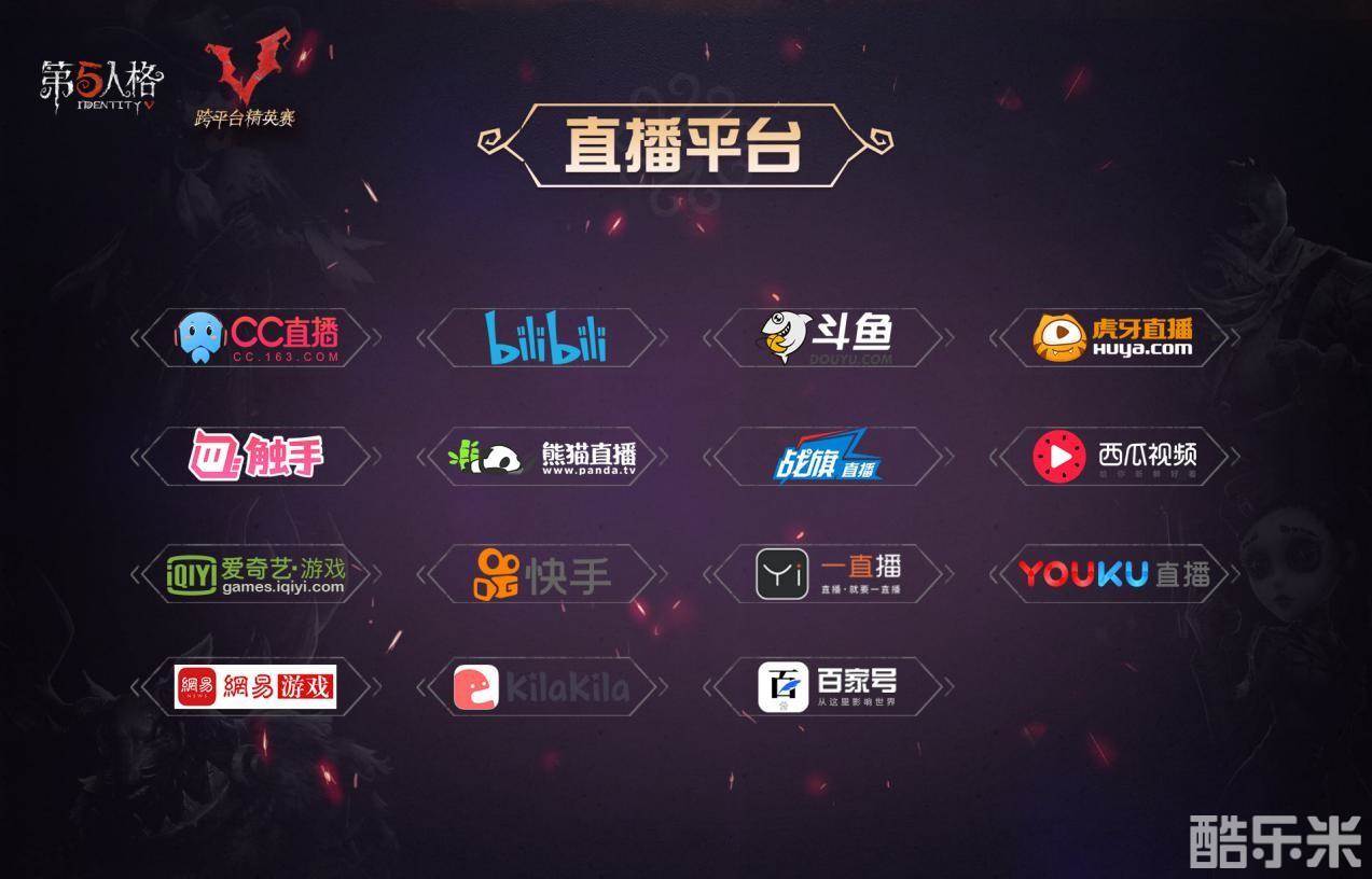 本次赛事联合网易CC、B站、斗鱼、虎牙、触手、熊猫、战旗、西瓜视频、爱奇艺游戏、快手、一直播、优酷直播、网易游戏频道、kilakila、百家号等多家直播平台,可在比赛当日于各平台搜索【跨平台精英赛】观看精彩比赛。各平台当家主播的实力之战,尽在这个冬天!第五人格跨平台精英赛等待你的关注!