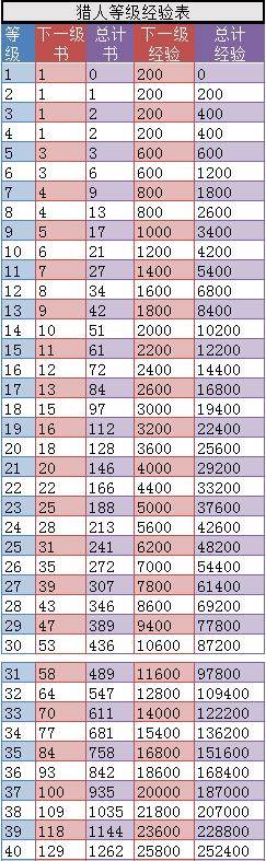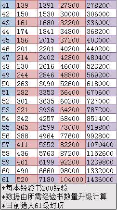 怪物猎人开拓记猎人1~61级所需经验表分享