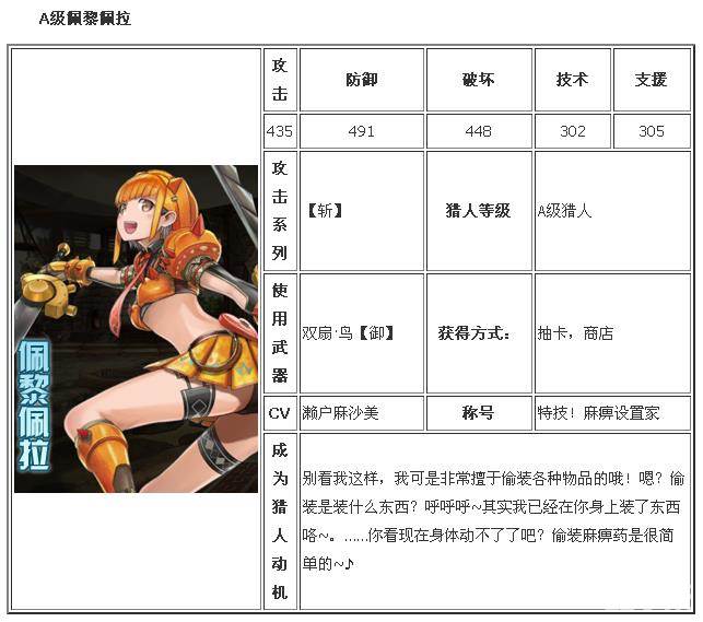 《怪物猎人开拓记》佩黎佩拉属性资料汇总