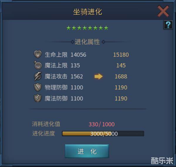 3.坐骑的品质越高,每进化一星所能提供的属性也越高。