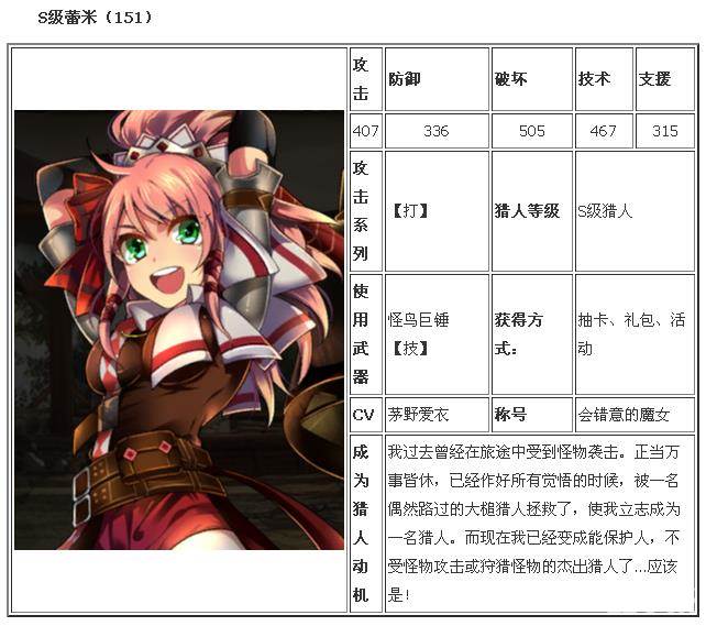 怪物猎人开拓记S级猎人蕾米获得方式,怪物猎人开拓记S级猎人蕾米基本属性,怪物猎人开拓记S级猎人蕾米攻击系列【打】,怪物猎人开拓记蕾米厉害吗,怪物猎人开拓记S级猎人蕾米怎么获得,怪物猎人开拓记蕾米声优是谁,怪物猎人开拓记蕾米称号,怪物猎人开拓记S级猎人蕾米技能详情,怪物猎人开拓记S级猎人蕾米搭配!