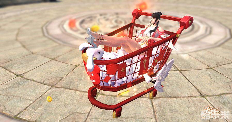 俗话说好事成双,另一款坐骑“福运购物车”也同时上线,红色的配色洋溢着喜庆的感觉,而购物车款式的车身设计有没有让你想起双十一期间剁手的感觉呢?车内还放置了许多红包,据说购买“福运购物车”的少侠都发财了!