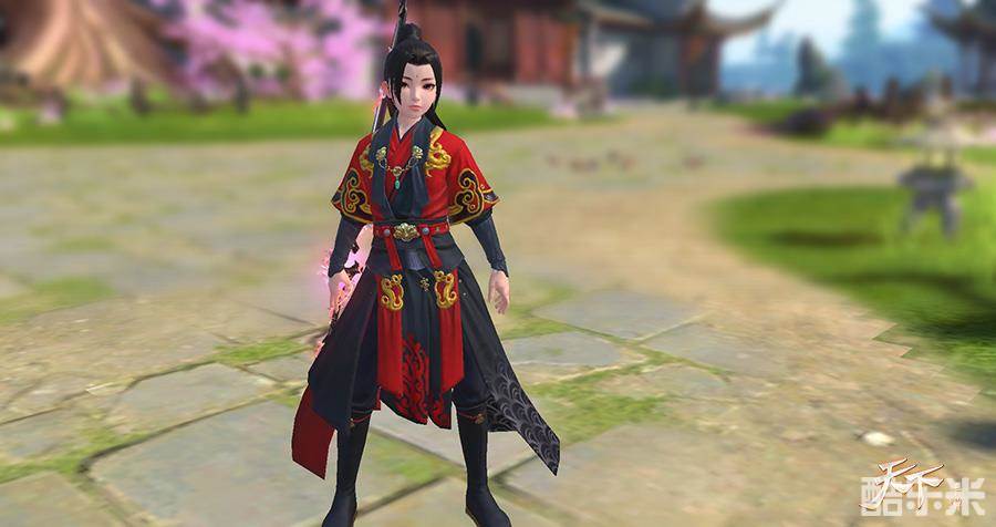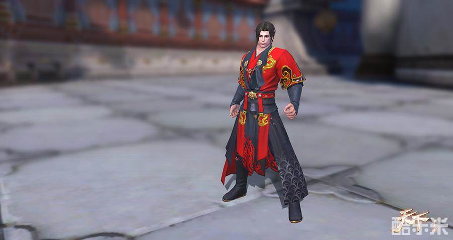 男装款式是紧身劲装,透过衣服仿佛都能看到天机大大充满力量的肌肉呢。黑、红相间的配色再搭配上金色花纹,低调又不失霸气,这才是今秋最in男装!