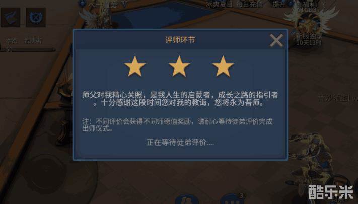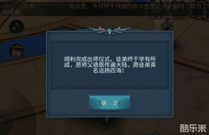 后面出师还有个评价,也会有不同的师德。师德主要是排名用的,没其他用处哦。