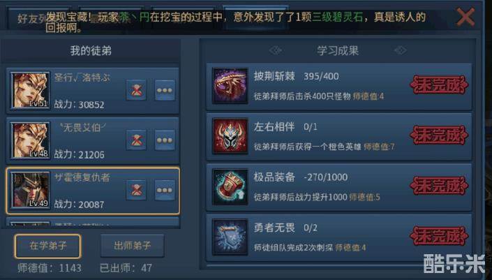 3.出师师傅有什么奖励?