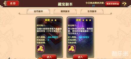 说起金币的获取方式,那么金币副本一定是最佳的一个渠道。作为副本奖励为金币的一个副本,是每日金币大量获取的一个来源。所以强化装备急需金币的小伙伴们,每天的金币都要完成,不要落下哦。金币副本分为两种难度,难度越高,获取的金币也越多。当然,战力不足还是不要挑战啦。