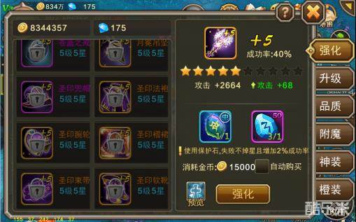40级后,将会开启三种玩法,分别是异域历险,狩魔之战和精英BOSS,这三种玩法都会产出大量的装备材料。其中强化石用于装备强化,强化+1到+3使用初级强化石,强化+4到+6使用中级强化石,强化+7到+9使用高级强化石。一般活动和副本多产出低级强化石,各位可以通过合成功能得到更高级的强化石。建议40级以后,首先努力收集强化石,让全身装备强化+4,战力自然就上去了。值得注意的是,强化+1到+3成功率较高,+3升+4的时候成功率会降低到50%,这时候使用保护石可以保证强化过程中不掉星哦!