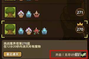 Tips:打完60层会开启无尽讨伐,这样我们在下线之前可以挂在最近一 个我们可以挂机通关的关卡,最好是5的倍数方便获取更多装备;
